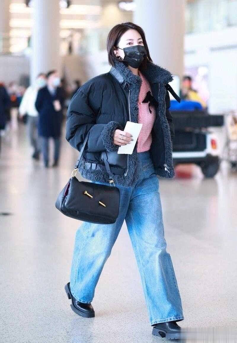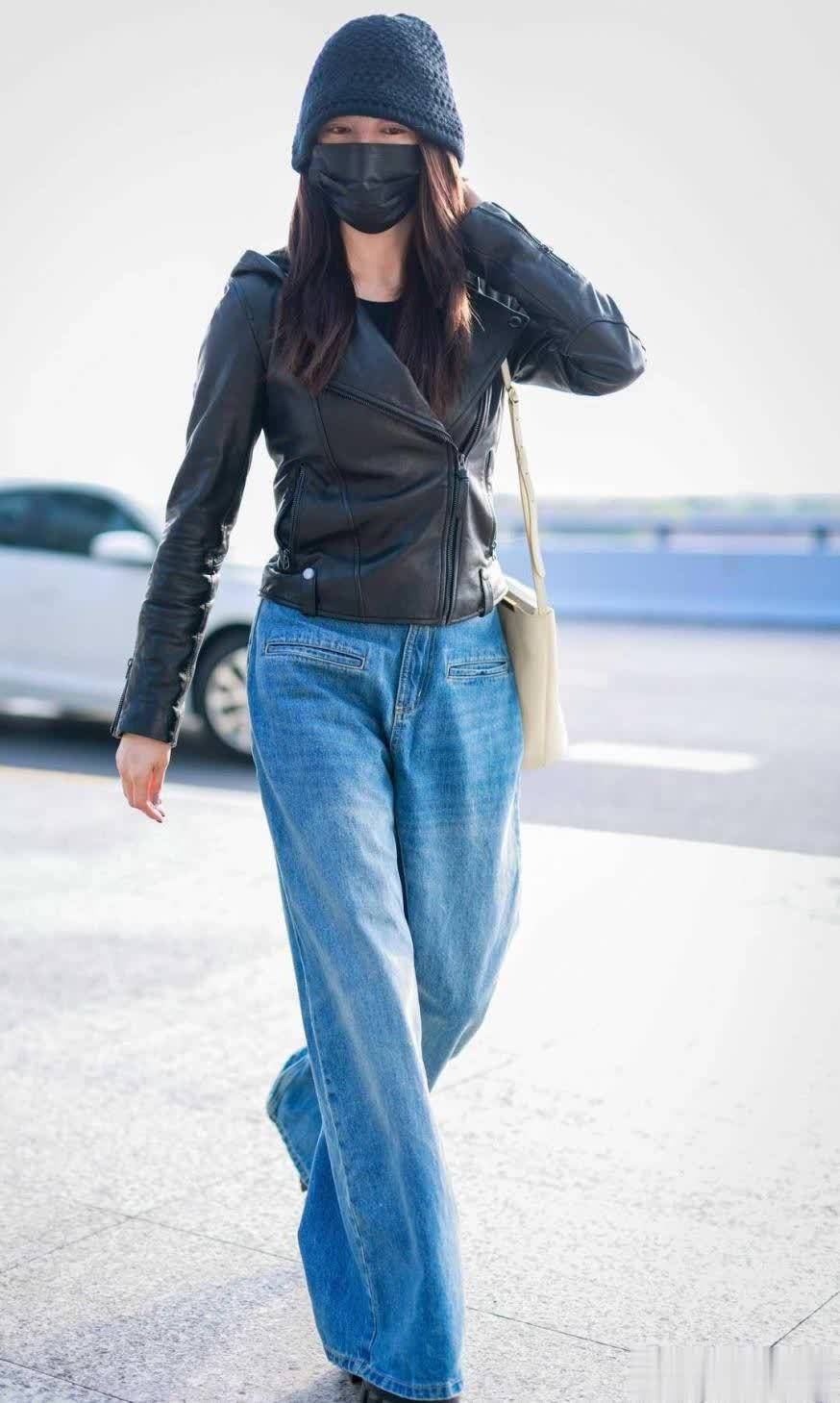 穿皮衣时,里边搭什么取决于是哪个季节。如果是秋季,时髦精们不假思索会尝试打底衫,其不仅具有高级感,还能确保人不受冻。皮衣两侧是有口袋的,张雨绮把一只手放进口袋,一只手在外边自由摆动。这样的话,走起路来气场十足。